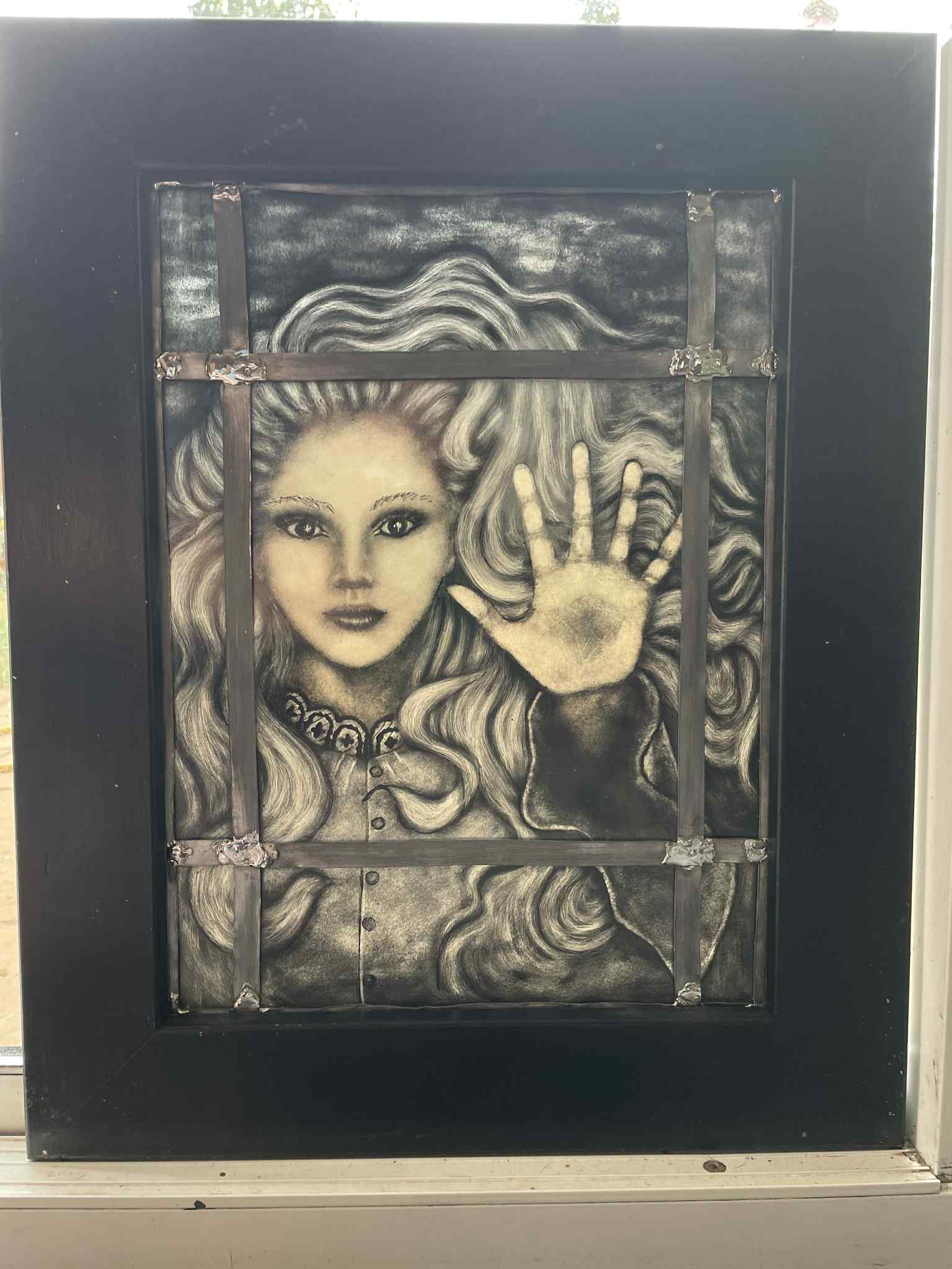 Hauntingly beautiful and rich with literary emotion, “Wuthering Heights – Cathy at the Window” is a striking stained glass artwork handcrafted by Christine at Amber Dragons. Inspired by the ghostly presence of Cathy in Emily Brontë’s classic novel, this atmospheric piece captures the chilling moment where her spirit appears at the window of Wuthering Heights.